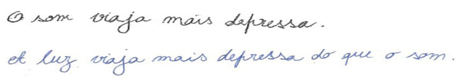 Praticamente todos os alunos acham que o som é mais rápido do que a luz. Depois de questionados sobre “porquê?” esta ideia, muitos respondem “ouve-se logo o barulho”.