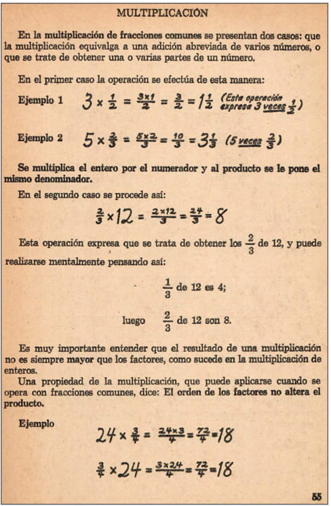 Es decir que, en algunas lecciones se buscaba la obtención de formalizaciones como corolario del proceso de descubrimiento (o de inducción). Los libros de texto eran un importante apoyo para poner en práctica tal enfoque. Aunque plasmarlo en el tratamiento de las fracciones no fue tan sencillo como en otros temas, por lo que su incorporación no fue muy frecuente.