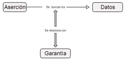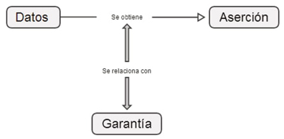 Un argumento deductivo surge cuando partiendo de los datos se utiliza una regla general como garantía para obtener la aserción (figura 2). Este tipo de argumentos se dan principalmente en el proceso de justificación.