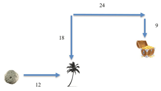 Un pirata encuentra un mapa con medidas raras en el que se indica dónde fue enterrado un tesoro. El diagrama grabado es el siguiente.