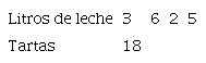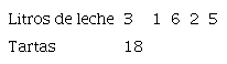 Primero, 6 es el doble de 3 (el número de litros de leche que necesitó para 18 tartas). Coloca tú en la tabla el número de tartas que puede hacer con 6 litros de leche.