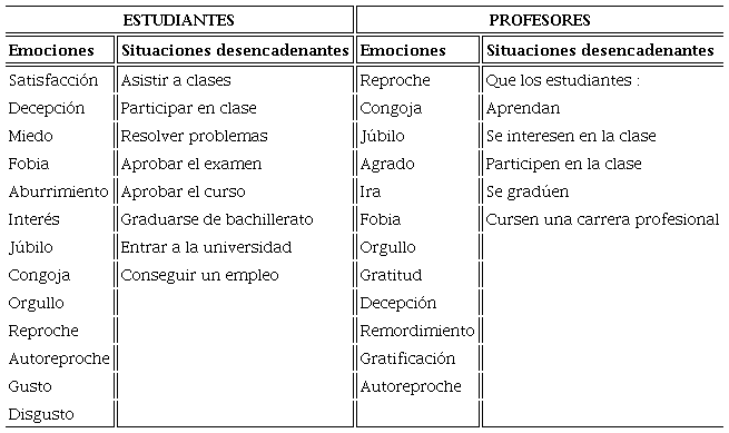 Particularmente, nuestras investigaciones sugieren que las emociones, positivas y negativas, del profesor de matemáticas suelen desencadenarse en función de las metas alcanzadas por sus estudiantes en el salón de clases (García-González y Martínez-Sierra, 2016), por ejemplo, “que los estudiantes aprendan”. Mientras que muchas de las emociones que experimentan los estudiantes en la clase de matemáticas son desencadenadas por normas del sistema escolar y valoradas por los estudiantes como metas del salón de clases, entre ellas: participar en clases, resolver problemas, y graduarse. Si estas metas son alcanzadas, las emociones que experimentan los estudiantes son positivas, en caso contrario, negativas (Martínez-Sierra y García-González, 2014; 2016; 2017).