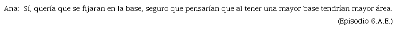 Este episodio nos da evidencia que sabe que los estudiantes tienden a pensar que el rectángulo que tenga la mayor base será el que tenga la mayor área, que forma parte de la categoría fortalezas y debilidades del KFLM de Ana.
