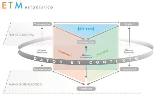 Génesis instrumental en ETM-E. Da acceso a explicar la acción de un sujeto al operar con artefactos, materiales o simbólicos, ya sean herramientas (valor epistemológico) o instrumentos (valor cognitivo) involucrados en un proceso de construcción en estadística, esto es, representar datos, determinar resúmenes numéricos de los datos en contexto, entre otros.
