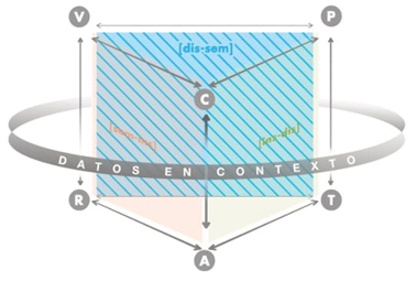 Génesis semiótica en ETM-E. Da cuenta de la dialéctica entre lo semántico y lo sintáctico de los datos en contexto, en tanto significado y representación, permitiendo el análisis de los signos involucrados en las acciones de leer o escribir en estadística y que se relacionan a los procesos de decodificación y codificación de signos.