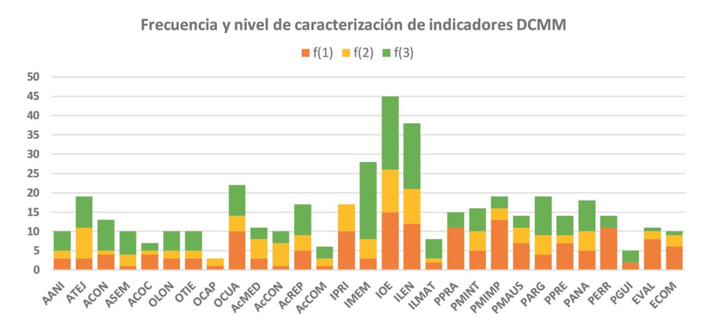 Al determinar la frecuencia, se observa que aquellos indicadores asociados a CMM presentan una frecuencia absoluta acumulada menor a la mitad de la frecuencia absoluta acumulada de los indicadores asociados a DCM. Esto se debe a que cada entrevistado posee la habilidad para hacer o recordar información, que no necesariamente atiende a los indicadores emergentes para la dimensión CMM. En cambio, y como se observa en la figura 1, los indicadores asociados a la categoría DCM fueron observados en todas las entrevistas, independiente de la actividad de base, pero con claras diferencias en las rutas consideradas para el inicio, proceso y evaluación del desarrollo experimentado.