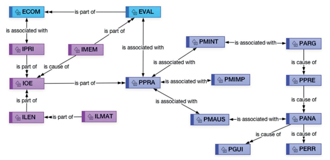Para caracterizar el Modelo y sus clases latentes, se procedió a seleccionar indicadores representativos de cada clase latente según el grupo de participantes que la componen en dos formas diferentes: a) indicadores con probabilidad condicional de 0.5 o más, y b) comparación entre las probabilidades condicionales de cada indicador de cada clase latente. Apartados los indicadores, se evalúa la estructura lógica que conceptualiza cada clase latente dentro del Modelo Condicional/Consecuencial. La información organizada se visualiza de forma compacta y accesible por medio de redes conceptuales/relacionales (Miles et al., 2014).