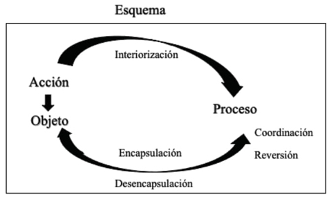 En efecto, la teoría APOE del acrónimo de acción, proceso, objeto, esquema, que rotulan los estados de construcción mental de un concepto de la matemática es un constructo que permite describir cognitivamente las construcciones mentales y los mecanismos por los cuales un concepto matemático es aprendido por un sujeto.