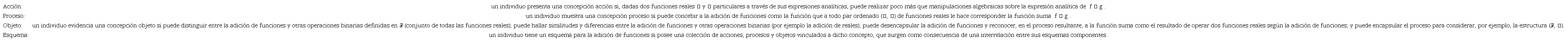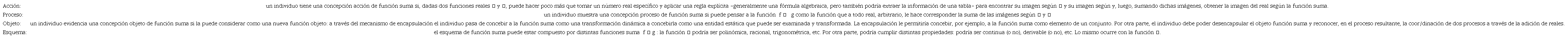 esquema de adición de funciones. No fue necesario realizar descomposiciones genéticas de conjunto, función y operación binaria, dado que ya existían en la literatura (Arnon et al., 2014); en cambio elaboramos una descomposición genética preliminar de función suma.