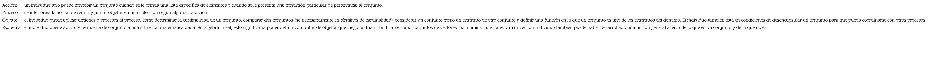 En Arnon et al. (2014, pp. 48-49) se presenta la siguiente descomposición genética del concepto conjunto: