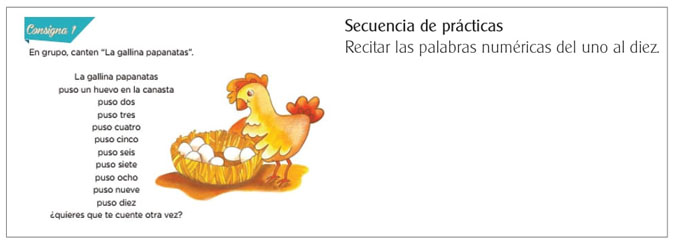 Secuencia numérica. Consiste en el uso del número para indicar el orden para recitar o escribir la secuencia de números naturales. Por ejemplo, tareas donde se pide completar o recitar la secuencia numérica del uno al cien.