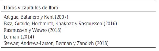 Las fuentes consultadas pueden ser organizadas en tres niveles: (1) revistas de investigación, (2) libros y capítulos de libro, y (3) fuentes citadas y conocimiento propio de la literatura. Enseguida describimos con más detalle cada uno de estos niveles.