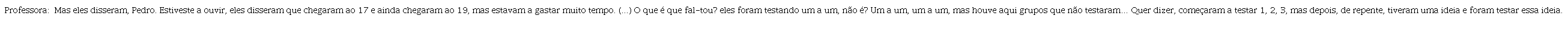 Durante a discussão coletiva, identificam-se um total de quatro ações deste tipo, não se destacando alguma que explicitamente traduza preocupações associadas a processos de raciocínio dos alunos.