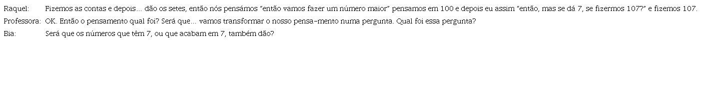 Finalmente, conjeturar (Quadro 13), embora seja um processo de raciocínio pouco presente na discussão coletiva, é um processo para o qual a professora consegue guiar os alunos.