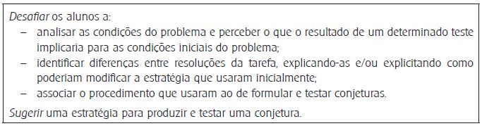 Neste excerto, Apoiar é seguido de um desafio associado à formulação de uma conjetura sobre as características dos números que são solução do problema.