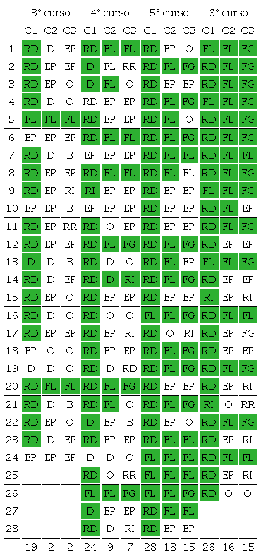 En la tabla 2 se muestran los resultados obtenidos por los 106 alumnos según los dos criterios de análisis: las respuestas correctas están sombreadas y en la cada celda aparece la estrategia utilizada por cada alumno en cada cuestión.