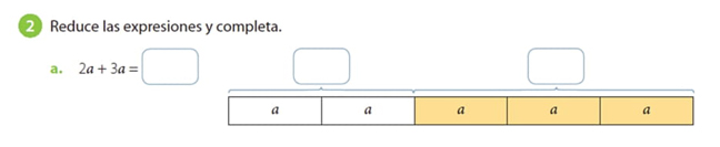 Finalmente, el Nivel 3 se asocia con el eje Pya, específicamente con situaciones-problema donde la consigna es elaborar transformaciones de expresiones simbólicas, en particular reducirlas conservando la equivalencia (ver figura 15). Predominan los lenguajes simbólico e icónico, los conceptos-definiciones se vinculan con expresiones algebraicas, términos semejantes, variable. Los procedimientos se apoyan en recursos visuales para ejemplificar, entre otros, la reducción de términos algebraicos.