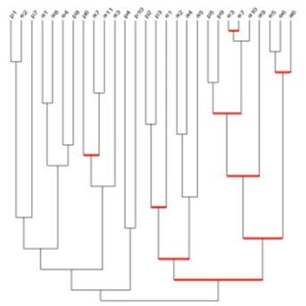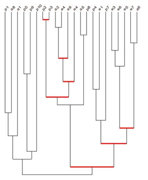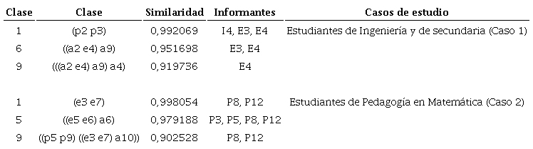 En la figura 14 el árbol de similaridad para los informantes de los Casos 1 destaca 7 clases significativas que el software CHIC marca con un trazo rojo. Por otro lado, en la figura 15, el árbol de similaridad para los participantes del Caso 2 incluye 9 clases significativas.