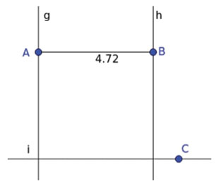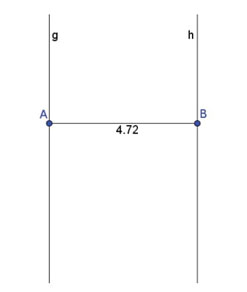 Se puede observar que utilizaron la herramienta Distancia para medir la longitud del segmento AB. Hasta aquí, se tiene una construcción que no se deforma frente al movimiento, ya que al mover A, B, g o h, las propiedades involucradas se siguen preservando. Veamos qué ocurre a continuación.
