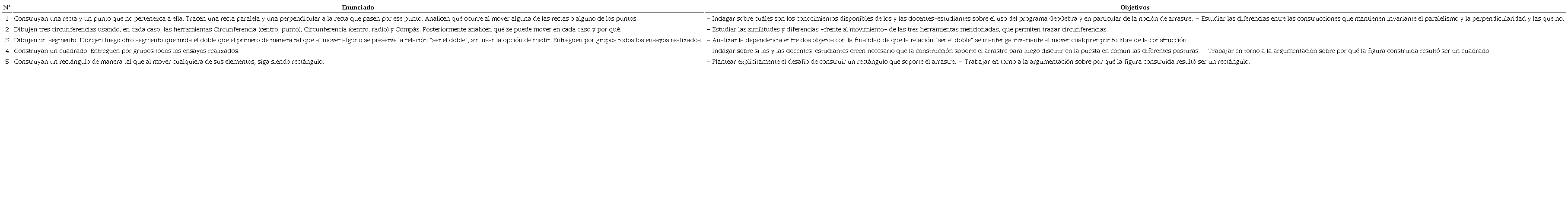 En la tabla 1 donde se presentan los enunciados de los primeros problemas del Seminario junto a los objetivos de cada uno a fin de explicitar este primer recorrido transitado por los y las docentes-estudiantes.