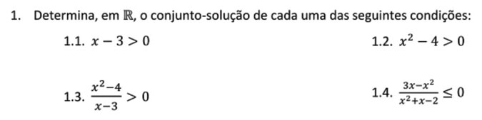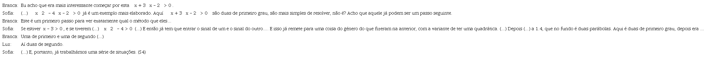 Decidiram incluir uma outra questão, idêntica à 1.3, que tinha dois casos particulares, como refere Sofia: “aquelas situações em que é tudo positivo, por exemplo , ou , para eles perceberem que também têm que pensar um bocadinho e não se pôr logo a resolver. Depois é também ter a perceção de que é sempre positivo, e é sempre negativo” (S3). Deste modo, as professoras elaboraram esta tarefa para que os alunos compreendessem os procedimentos envolvidos na resolução de inequações fracionárias, não apenas para as aquelas condições em particular, mas para os aplicarem a outras condições.