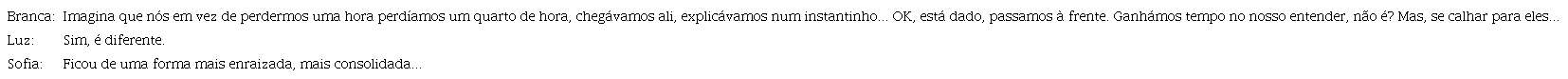 Deste modo, o trabalho das professoras no estudo de aula, desde o planeamento à reflexão pós-aula, seguindo uma abordagem exploratória, trouxe-lhes um olhar diferente sobre a elaboração e a condução das tarefas, sobre as dificuldades dos alunos e sobre as estratégias que podem seguir. Em particular, as professoras valorizam a proximidade entre o trabalho no estudo de aula e a sua prática letiva, na sua escola, com os seus alunos, com momentos de partilha e reflexão entre os professores participantes.