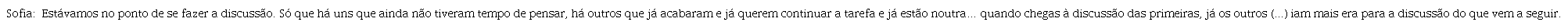 As professoras esperavam que os alunos resolvessem esta tarefa algébrica ou graficamente e a discussão sobre estratégias que eles poderiam seguir foi uma oportunidade para discutir a seleção e sequenciação das respostas a explorar durante a discussão coletiva: