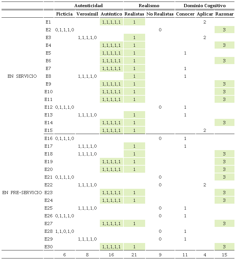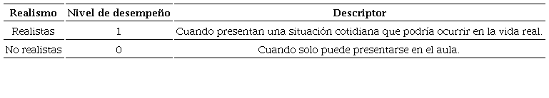 Para la categoría de realismo se siguieron las aportaciones de Cancelo (2019), donde se le asignó en la tabla 2 los valores de 1 para las tareas realistas y 0 a las no realistas.