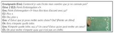 Nous pouvons observer que les élèves, guidés à la fois par les questions des SP et par l’enseignante, progressent rapidement vers la généralisation et la production spontanée d’expressions non institutionnelles. L’enseignante insiste sur les questions où il est précisé qu’il ne faut pas utiliser de mots, elle dira aux élèves qu’ils doivent omettre l’utilisation de mots dans les messages qu’ils fournissent afin de présenter un message abrégé, raccourci, court et ne pas oublier d’indiquer les opérations en jeu.