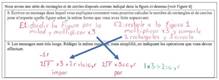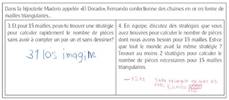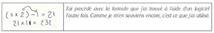 Individuellement, Ald arrive à la bonne réponse, on n’a toutefois pas accès à la façon dont il s’y est pris puisqu’il dit qu’il l’a fait dans sa tête. On observe un changement par rapport à la résolution de la première SP pour laquelle il avait eu recours au dessin pour trouver le nombre de personnes nécessaire. Lors de la discussion en équipe, on peut observer que les élèves de l’équipe d’Ald comptent le nombre de tiges de deux façons différentes. Ils repèrent deux tiges par maille et une tige supplémentaire pour fermer le motif ( − × 2 + 1). L’autre façon de faire est de considérer qu’il y a deux tiges par maille triangulaire sauf pour la première maille pour laquelle ils comptabilisent 3 tiges. Pour cette deuxième façon de faire, on observe que les élèves n’ont pas recours à une expression du même type que pour le premier message, ils utilisent les mots et un exemple qui illustre leur raisonnement (Figure 16). On peut penser ici que l’écriture en une chaine d’opérations avec une variable pose problème à l’équipe.