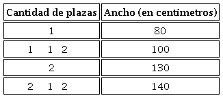 Este evento de numeracidad trata de la descripción del tamaño de un colchón, a partir de una nominación utilizada en el comercio argentino: “una plaza”, “una plaza y media”, “dos plazas” y “dos plazas y media”, entre otros. Estas nominaciones parecieran vincularse al uso de fracciones en una situación de medición del ancho del colchón utilizando como unidad de medida la “plaza”. Pero en realidad, se trata de un contexto de medición no exacta del ancho del colchón, en la que la apelación al uso de fracciones es lingüística y estimativa: la “plaza” no puede considerarse estrictamente una unidad de medida de la longitud, ya que no es estándar y varía en función de los países e incluso entre fabricantes. Y, además, el sistema de medición de la longitud según la “cantidad de plazas” no mantiene una relación de proporcionalidad directa con el sistema métrico, con lo cual la expresión “media” no representa estrictamente la mitad de una plaza, como lo muestra uno de los sistemas utilizado por los fabricantes11 (ver Tabla 1).