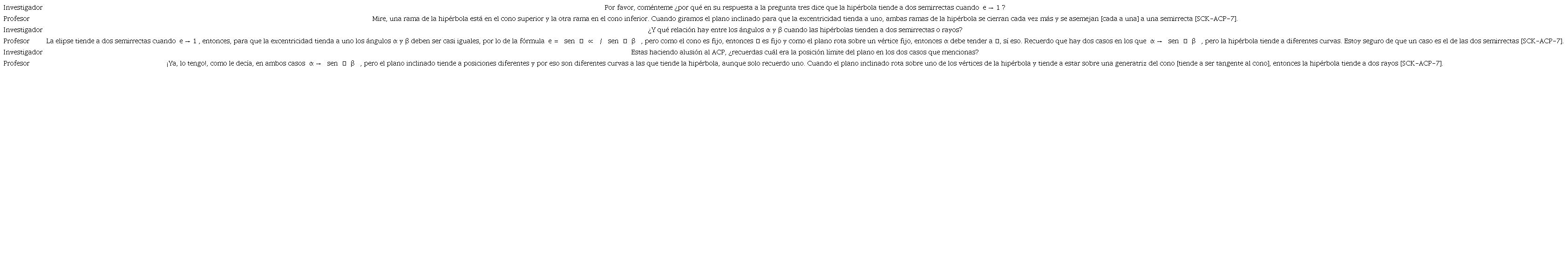 Entrevista al participante que respondió: “Si el plano que corta al cono tiende a estar sobre una generatriz del cono, entonces la hipérbola se cierra cada vez más hasta parecer dos semirrectas”.
