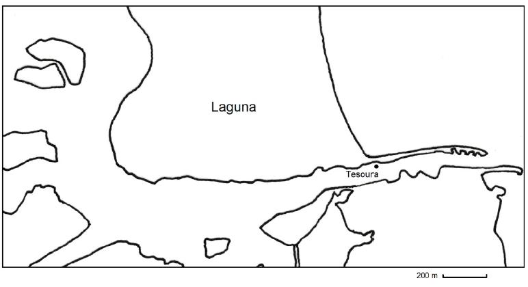 Neste artigo apresentamos uma descrição geral da pesca, resultados parciais e hipóteses com base em investigação bibliográfica e etnográfica. As reflexões apresentadas são fruto de uma longa interlocução entre os autores e parte de uma pesquisa de doutorado em andamento2. Os períodos de trabalho de campo concentraram-se nos invernos de 2015 e 2016, no ponto de pesca chamado Tesoura. Localizado nas margens do canal de Laguna, ele está a apenas quatro quilômetros do centro da cidade. Tudo se passa, portanto, em contexto urbano. Tal atividade acontece durante todo o ano, mas sobretudo na temporada das tainhas3 ou safra, entre meados de abril e final de junho.