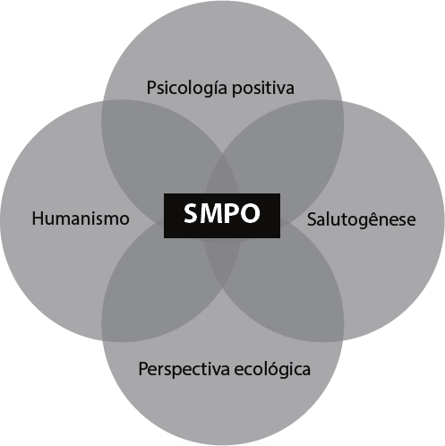 O nosso modelo teórico para a abordagem da SMPO parte da psicologia positiva, porque aborda aspectos como o bem-estar psicológico, a felicidade, bem como as fortalezas e virtudes humanas. Também leva em conta aportes do humanismo como o desenvolvimento de capacidades e potencialidades humanas, e ao mesmo tempo, baseia-se nas contribuições da salutogênese para a geração de círculos virtuosos de criação e incremento da saúde. Por último, considera-se o enfoque ambiental como base para promover a saúde mental em distintos contextos como o âmbito ocupacional (Figura 2).