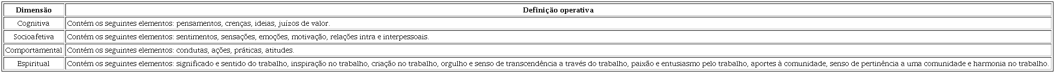 No Quadro 3, se mostram as definições operativas de cada uma das quatro dimensões da saúde mental positiva ocupacional.