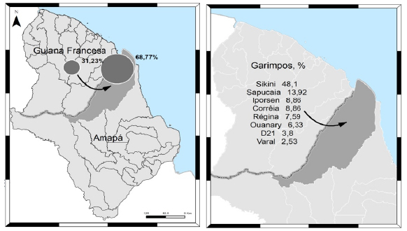 Do outro lado do rio Oiapoque, localiza-se a Guiana Francesa, um território ultramarino de possessão político-administrativa de raízes coloniais do Estado francês, na costa do Atlântico, um dos mais antigos e ricos depósitos de minerais no mundo, uma formação geológica denominada Escudo das Guianas (Musset et al., 2014). A Guiana Francesa, como departamento ultramarino francês, faz parte da União Europeia. Suas principais atividades econômicas estão ancoradas nos setores terciário, aeroespacial e de construção, embora a riqueza mineral de seu subsolo estimule a mineração artesanal ilegal de ouro (Hammond et al., 2007; Musset et al., 2014). Dois terços do ouro exportado são ilegais. Estima-se que cerca de 10 mil pessoas (90% das quais são migrantes ilegais) estão envolvidas nesta atividade (Granjer, 2013). A mineração de ouro é responsável por um fluxo constante e significativo de imigrantes ilegais para a Guiana, principalmente brasileiros, que desenvolvem atividades de garimpo em áreas de floresta tropical (de Theije, 2009).