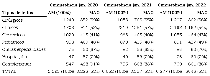 Desse modo, o estado do Amazonas apresentou dados acima da média nacional referentes à pandemia de Covid-19. Logo, faz-se necessário apresentar o panorama da atenção terciária no estado no que tange à oferta de hospitais e leitos hospitalares no intuito de esclarecer os problemas existentes. Para isso, pesquisaram-se no CNES as competências de janeiro de 2020; janeiro de 2021; e janeiro de 2022. As nomenclaturas adotadas seguem os termos do CNES.