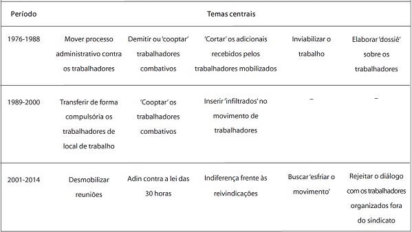 Entre 2001 e 2014, frente às tentativas dos trabalhadores de negociar com os gestores, a estratégia adotada pelos últimos é a de desmarcar e remarcar reuniões “ad aeternum: eles nunca conseguiram falar com o prefeito, ele marcava um dia e daí desmarcava (…) remarcava e acabou por aí” (E7).