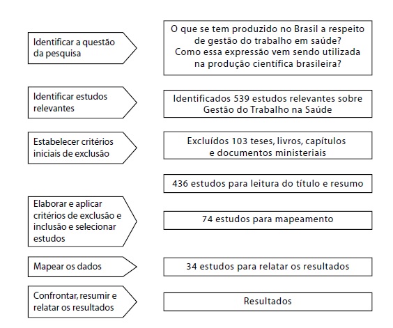 Resumo: No Brasil, a expressão ‘gestão do trabalho’ passou a ser utilizada após a 12a Conferência Nacional de Saúde em substituição a ‘recursos humanos’. O objetivo foi analisar, com base no contexto histórico brasileiro, os sentidos atribuídos à expressão ‘gestão do trabalho em saúde’ na literatura científica brasileira, por meio de scoping review na base Literatura Latino-Americana e do Caribe em Ciências da Saúde (Lilacs), entre 1990 e 2010. De 436 estudos identificados, 34 foram incluídos. Houve crescimento absoluto das publicações após a 3a Conferência Nacional de Gestão do Trabalho e Educação em Saúde, 2006. O conteúdo foi sintetizado em cinco unidades temáticas: conceitos de gestão do trabalho em saúde, formulação de políticas, participação dos trabalhadores nos processos de trabalho, precarização do trabalho e novos desafios. Observou-se consenso sobre a complexidade da expressão e os aspectos distintos foram explorados dependendo das características políticas, sociais e econômicas no momento da construção do pensamento. As discussões teóricas deveriam estimular mudanças nas práticas de gestão e cultura dos modelos de produção, porém as mudanças são escassas, restando um questionamento não desvelado: gestão do trabalho em saúde, uma mudança terminológica ou de paradigma?