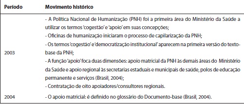 O tema humanização, principalmente a PNH, é reafirmado em publicações por seu modo de operar e pelo apoio institucional, que é percebido, nesse estudo, como uma função exercida por trabalhadores que foram capacitados através de cursos ou oficinas sobre essa política. Entre os seus objetivos estão intervenções que buscam transformar práticas, tanto no âmbito da clínica quanto no da gestão, consideradas na PNH como intrínsecas e indissociáveis ( Campos, 2000 ; Pasche, 2009 ).