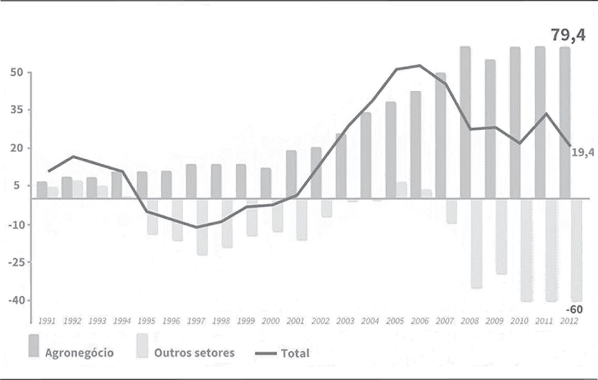 Segundo Santos e Chauí (2013), a superexploração do trabalho e a superexploração dos recursos naturais se amalgamam na abordagem histórico-concreta do agronegócio brasileiro. Um processo de caráter altamente concentrador da propriedade e da renda fundiária para responder a pressões externas por ajustamento das transações de mercadorias e serviços.