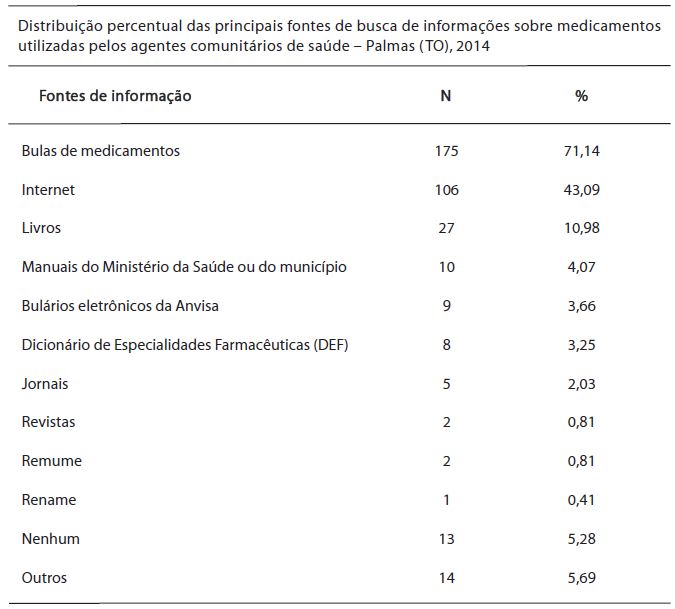 Tendo em vista tais aspectos, na Tabela 2 são apresentadas as principais fontes de busca de informações sobre medicamentos citadas pelos ACSs de Palmas.