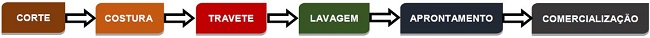 Na configuração do APL de confecções do Agreste, a produção ocorre, na maior parte dos casos, de maneira fragmentada e descentralizada, uma vez que cada etapa do processo produtivo ocorre em um local diferente do município ou de territórios ou municípios próximos. O fluxograma da produção relatado pelos trabalhadores de Toritama é expresso na Figura 1 .