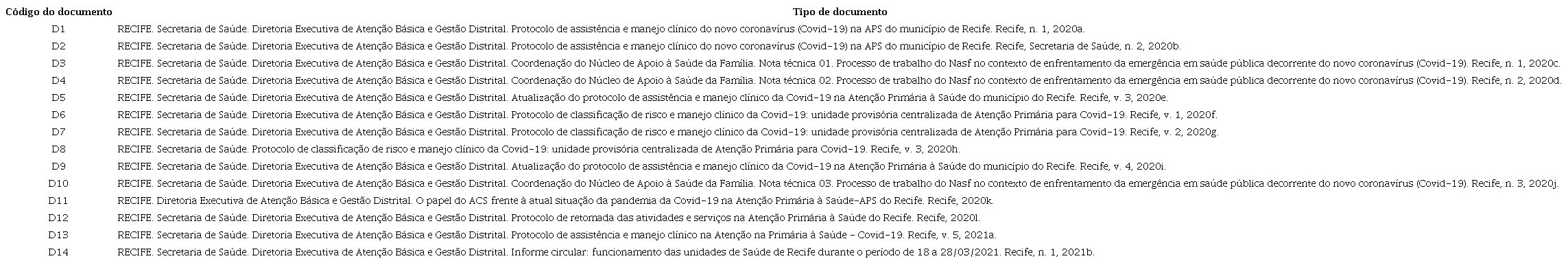 A pandemia da Covid-19 vem se mostrando um desafio em todos os âmbitos da saúde pública [...] sendo necessário organizar a rede de serviços da Atenção Básica do Recife para atuar na identificação precoce e no manejo oportuno dos casos suspeitos de infecção humana por SARS-CoV-2, tendo como finalidade mitigar a transmissão sustentada no território. (D13, p. 6, ver Quadro 1)