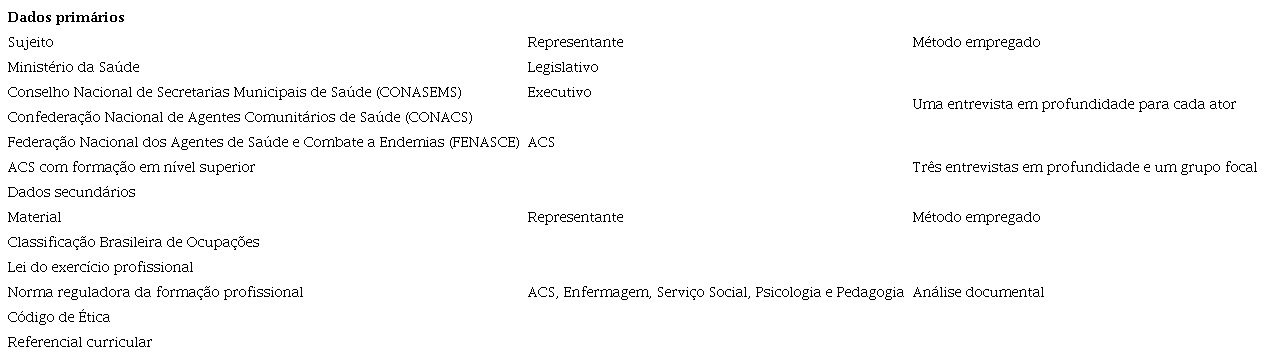 Pesquisa qualitativa, analítica e com triangulação de métodos, objetivando garantir maior credibilidade, confiabilidade e rigor científico às análises aqui propostas, mediante a interpretação dos diversos posicionamentos de sujeitos que disputam os rumos do trabalho e profissionalização das ACSs no Brasil (Quadro 1) (Santos et al., 2020; Méllo et al., 2021).