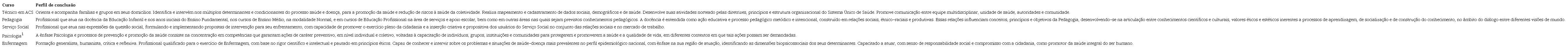 Em uma perspectiva comparada, o Quadro 3 apresenta os perfis profissionais projetados para o CTACS e para os cursos de Pedagogia, Serviço Social, Psicologia e Enfermagem, segundo respectivas Diretrizes Curriculares Nacionais (DCN) (Brasil, 2001a; 2001b; 2006; 2011; 2020b).