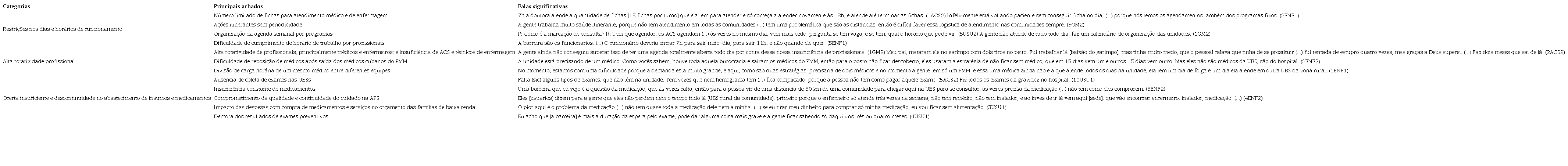 As UBSs do interior, geralmente, não funcionam todos os dias da semana e nos dois turnos por dia, salvo em situações quando os médicos e enfermeiros moram na comunidade. Durante as visitas, observaram-se UBSs vazias, com oferta de consultas subutilizada e com marcada falta de medicamentos. Em UBS do interior, é frequente a oferta de atendimento apenas itinerante e sem periodicidade definida.