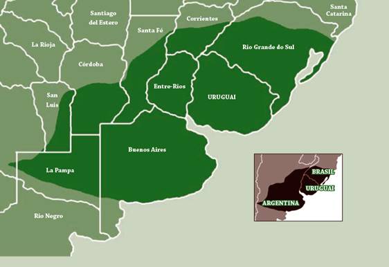 The site of INRC - lidas campeiras is the region of Bagé located in the core area of the Pampa. The suitability of the region for the livestock activity derives from the natural grasslands and from the history of the city as a route of passage and trade between the province and the Platine countries, that led to the establishment of a cultural area (Leal 1997). Ondina Fachel Leal discusses the academic and socio-anthropological establishment of the "South" as a territory of meanings of a specific social reality, a system of values and of a certain social area. For Leal, "the limits of this ethnographed and ethnographable cultural area often called the 'South', in a strategic rhetorical imprecision, do not coincide with the political boundaries of the state of Rio Grande do Sul or even the Brazilian nation."