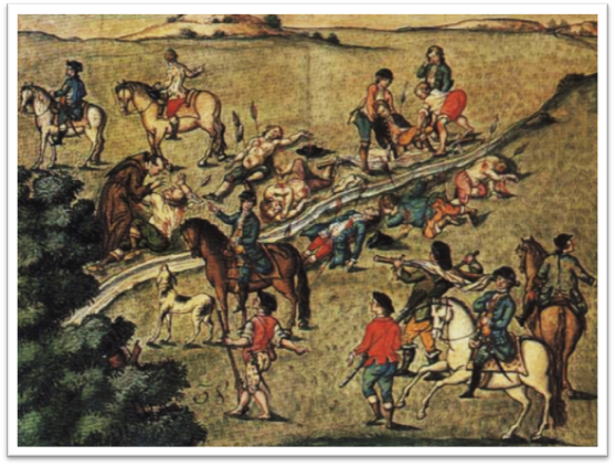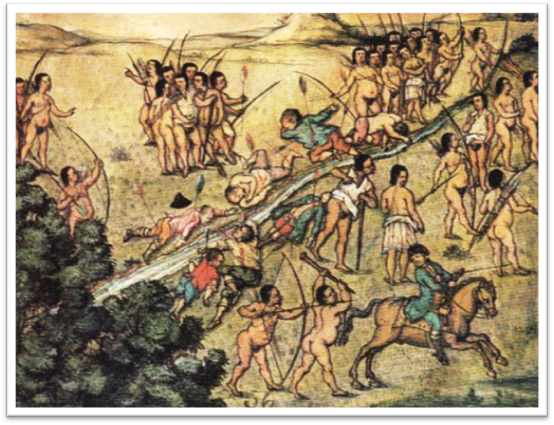 José Felix, together with his militiamen and slaves, chased and massacred wild Indians, coming to decimate hundreds of Cainguangue families (...) he reports that there was so much blood (…) that the nearby stream was dyed red and came to be called the River of Death” (Coraiola, 2003:28)