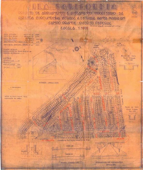 Enfin, nous signalerons que les PAL jouent un rôle très important en tant qu’ « artefacts commerciaux », au-delà de leur fonction « d’artefacts urbanistiques ». En effet, le Code Godoy reçut de nombreuses critiques des compagnies immobilières dans les années trente (Godoy 1932), qui contestaient jusqu’à la légalité du décret vu que, en matière de droit foncier, la prérogative est de la Fédération et non de la municipalité (à l’inverse, en matière d’urbanisme, la prérogative est de la municipalité, d’où l’imbroglio juridique). Le Décret-Loi n. 58 du 10 décembre 1937, qui « disposait sur le lotissement et la vente de terrain pour paiement en prestations », issue du gouvernement central, vint résoudre cette ambiguïté juridique. Le décret visait principalement à garantir la sécurité juridique des personnes qui achetaient leurs parcelles à terme, une modalité alors en pleine expansion: la partie du Code Civil qui règlementait les transactions commerciales n’assurait pas la pleine propriété de la terre à qui payait à terme, du moins pas tant que n’avait été émis le registre définitif de l’achat, une fois réglées toutes les mensualités. Le décret prétendait aussi lutter contre l’usurpation (grilagem), c’est-à-dire contre la vente de terrains par des gens qui n’en étaient pas les vrais propriétaires, compromettant l’accès des acheteurs à la pleine propriété. C’est pourquoi il exigeait des lotisseurs qu’ils déposassent chez le notaire, avant même de commercialiser ou de faire la publicité des parcelles, un mémorial incluant « la relation chronologique des titres de propriété depuis 30 ans », « un exemplaire du carnet ou du contrat-type d’engagement de vente des parcelles », un « certificat négatif d’impôt » et enfin un projet de lotissement avec le dessin de l’immeuble, celui-ci servant à situer les terrains mis en vente. Quoiqu’il s’agisse de deux sphères distinctes, un même artefact, le projet de lotissement, fonctionnait en même temps comme outil de régulation urbanistique et comme instrument de régulation commerciale et foncière. Cette jonction nous semble renvoyer au rôle de la « raison graphique » dans l’organisation des rapports de propriété: avant même que n’existent les PAL, les lotisseurs recourraient aux catalogues de terrains pour vendre leurs parcelles.